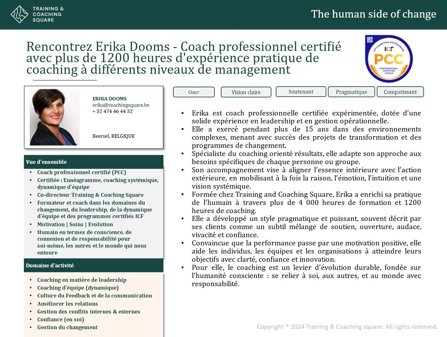 Rencontrez Erika Dooms – Coach professionnel certifié avec plus de 1200 heures d’expérience pratique de coaching à différents niveaux de management